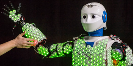 Smart Objects and Sensors: The key advantage of using flexible and printed electronics for the realization of functional objects and sensors is the possibility to combine and integrate, on the same substrate, multiple electronic components to create smart systems in a cost-efficient and mass-producible way. Functional printing allows the integration of different components such as sensors, actuators, batteries, antennas, transistor circuits, memories, or displays. Robotics is also a growing and important application area for high-performance flexible sensors as electronic skin (e-skin). This artificial electronic skin demonstrates how flexible, hexagonal sensor cells, each containing a microprocessor and embedded sensors for contact, acceleration, proximity, and temperature, can be networked across large surfaces to create a continuous tactile interface.